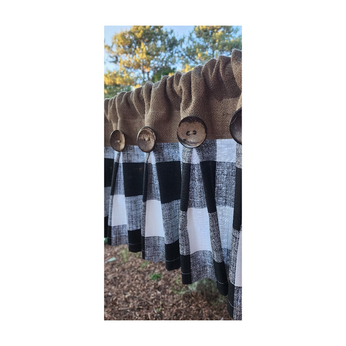 Burlap Buffalo Plaid Pleated Valance